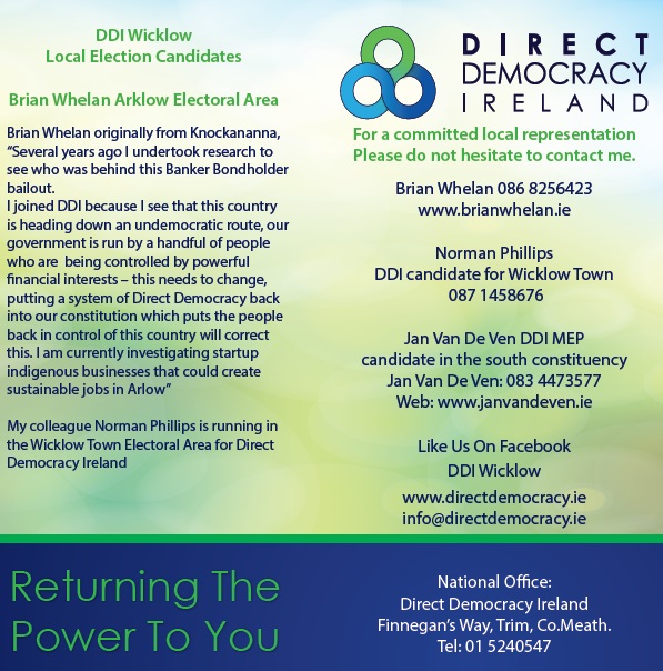 Leaflet from Brian Whelan – Direct Democracy Ireland -Arklow -2014 Local Elections » bwhelan3