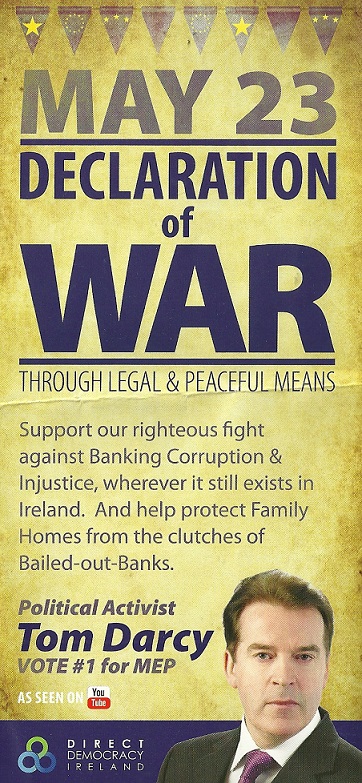 “May 23 Declaration of War” leaflet from Tom Darcy -Direct Democracy Ireland -2014 European Elections- Dublin » tdarcy1