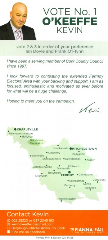 “…a name renowned for the delivery of genuine politics.” Kevin O’Keefe -Fianna Fail -Fermoy -2014 Local Elections » kokeefe2