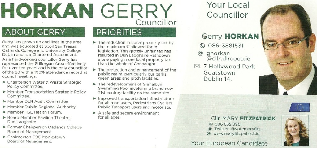Canvass Card from Gerry Horkan -Fianna Fail -Stillorgan -2014 Local Elections » ghorkan2