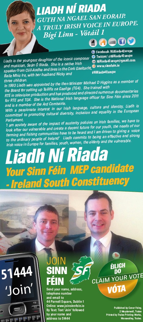 Leaflet from Pa Daly -Sinn Fein -Tralee -2014 Local Elections » padaly3