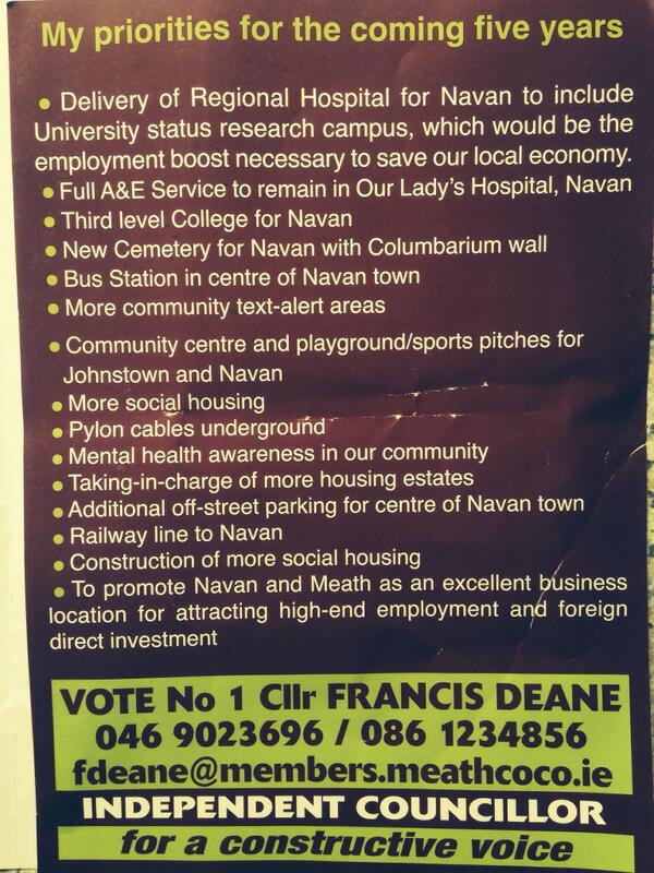 Leaflet from Francis Deane -Independent -Navan -2014 Local Elections » fdeane2