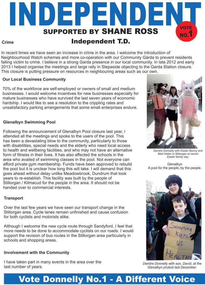 Leaflet from Deirdre Donnelly -Independent (Shane Ross Endorsed) -Stillorgan » ddonnellyl3