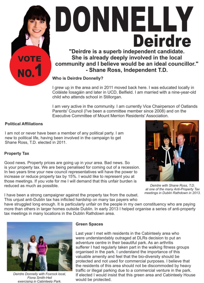 Leaflet from Deirdre Donnelly -Independent (Shane Ross Endorsed) -Stillorgan » ddonnellyl4