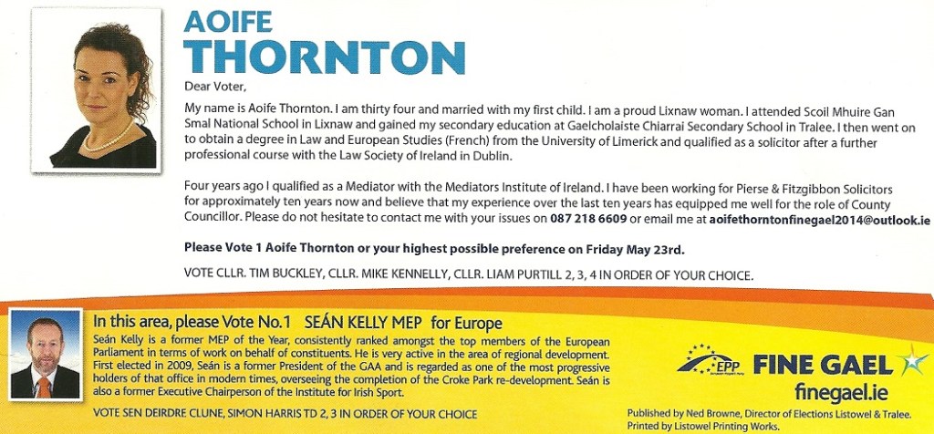Canvass Card from Aoife Thornton – Fine Gael -Listowel -2014 Local Elections » athornton2