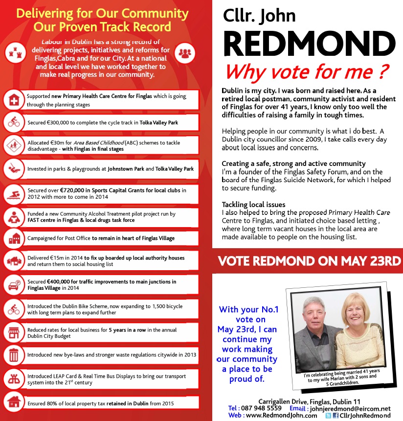 Leaflet from John Redmond -Labour -Finglas -2014 Local Elections » jredmondl2