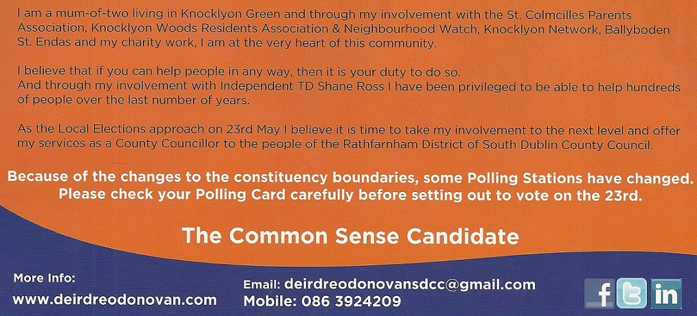 “Don’t Forget Me On The 23rd” -Flyer from Deirdre O’Donovan -Independent -Rathfarnham » dodcc2
