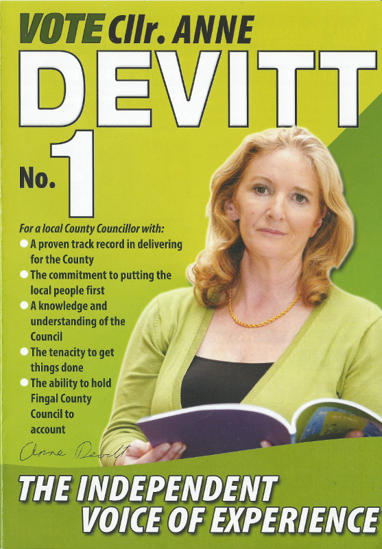 Leaflet from Anne Devitt -Independent (ex FG) – Swords – 2014 local Elections » Devitt – P1