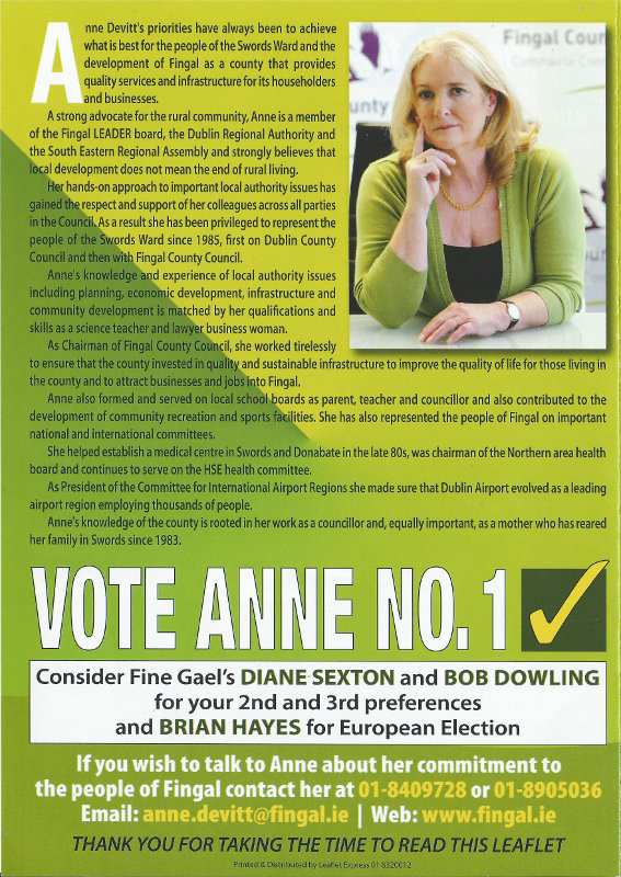 Leaflet from Anne Devitt -Independent (ex FG) – Swords – 2014 local Elections » Devitt – P4