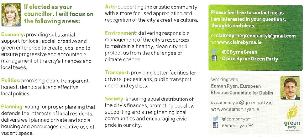 Canvass Card from Claire Byrne -Green Party -Pembroke South Dock » cbyrne2