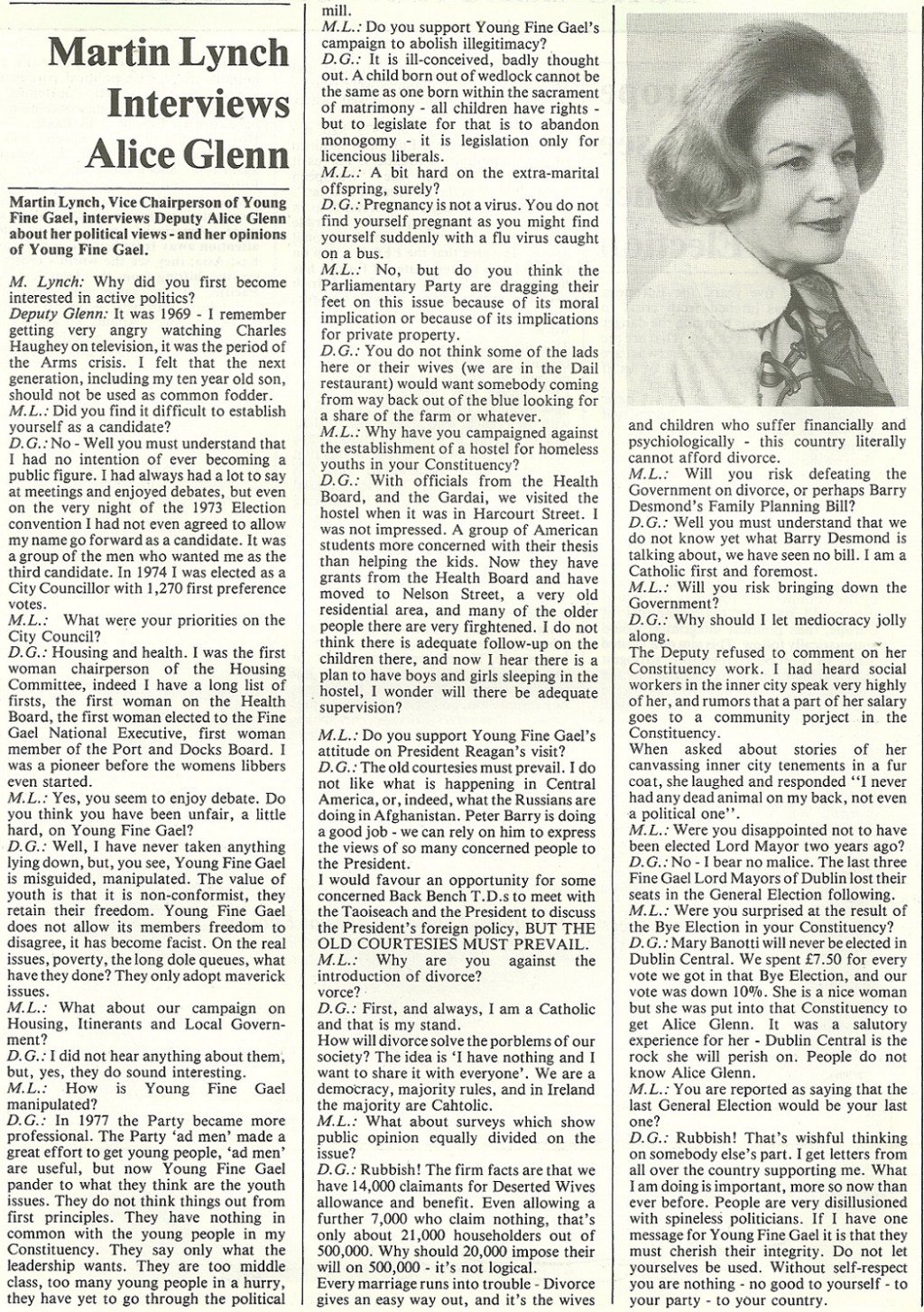 “I am a Catholic First and Foremost” -1984 Alice Glenn Interview from Young Fine Gael Magazine ‘Futureline’ » aginterview