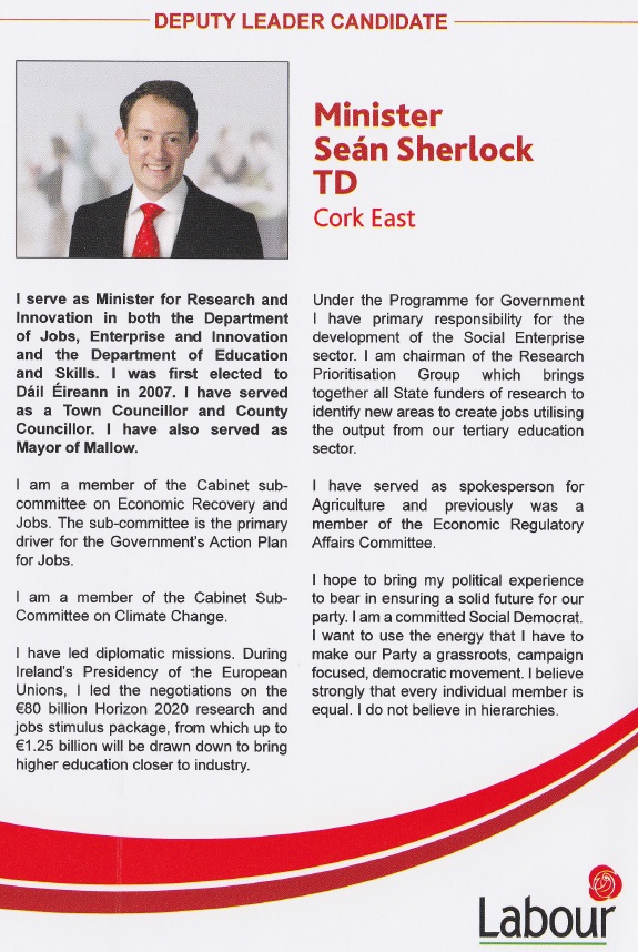 Leaflets from Ciara Conway, Alan Kelly, Michael McCarthy and Sean Sherlock- Labour Deputy Leadership contest » seansherlock