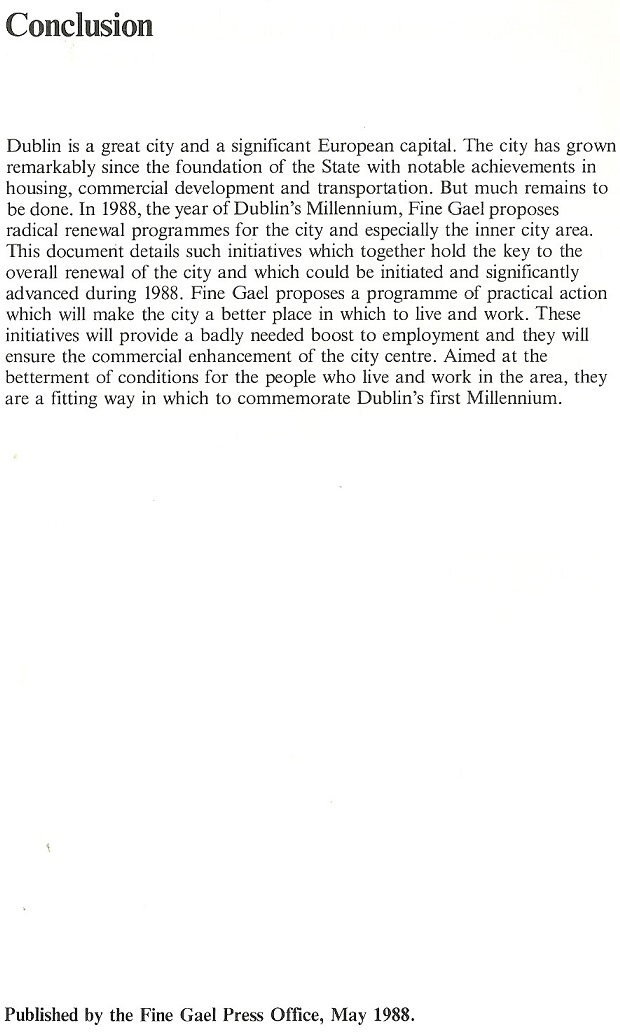 “Living Dublin – Policy Proposals Published in the Year of the Millennium” – Gay Mitchell- Fine Gael 1988 » ldub12