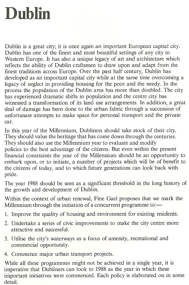“Living Dublin – Policy Proposals Published in the Year of the Millennium” – Gay Mitchell- Fine Gael 1988 » ldub3