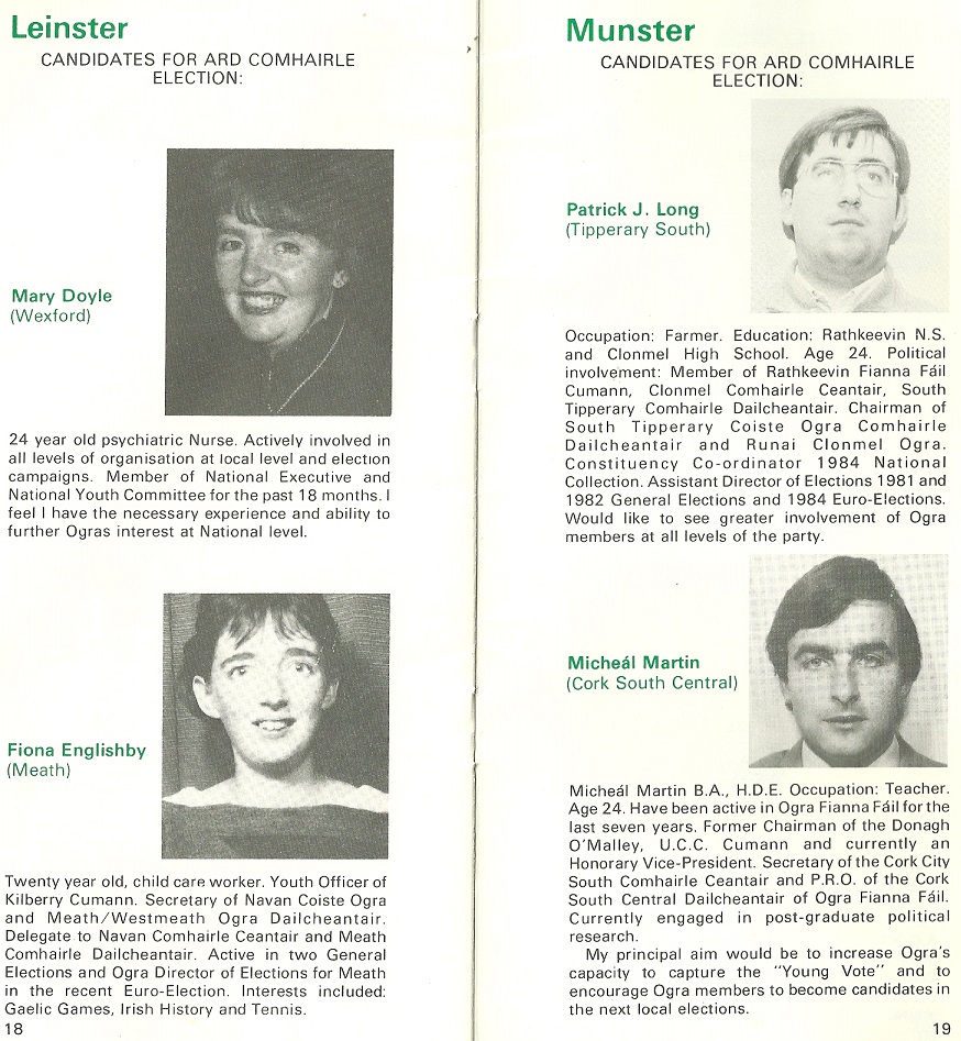 Candidate profiles (including Micheál Martin, Sean Gallagher) from the 1984 Ogra Fianna Fail Conference Clár » ogra84c