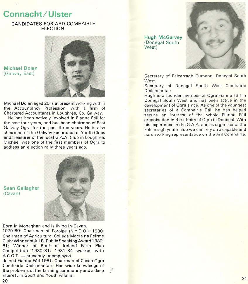 Candidate profiles (including Micheál Martin, Sean Gallagher) from the 1984 Ogra Fianna Fail Conference Clár » ogra84d