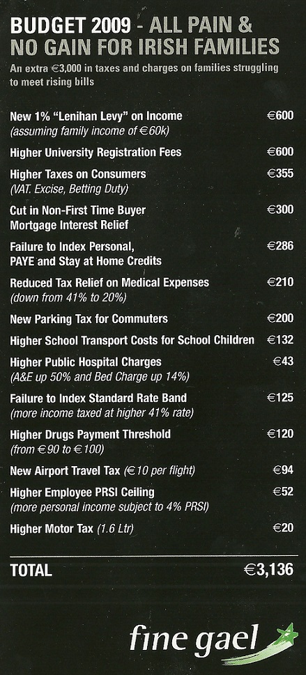 “I’m Worried about my medical Bills Now….” Budget 2009 leaflet from Fine Gael » 09fg5