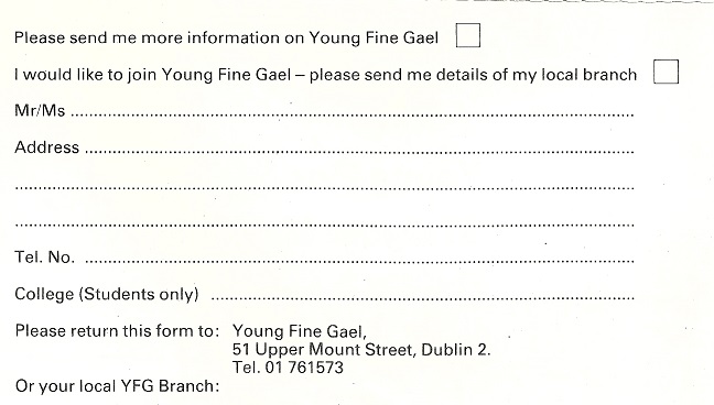 “Bring Them Down To Earth With A ….” leaflet from Young Fine Gael circa 1988 » yfgbang3