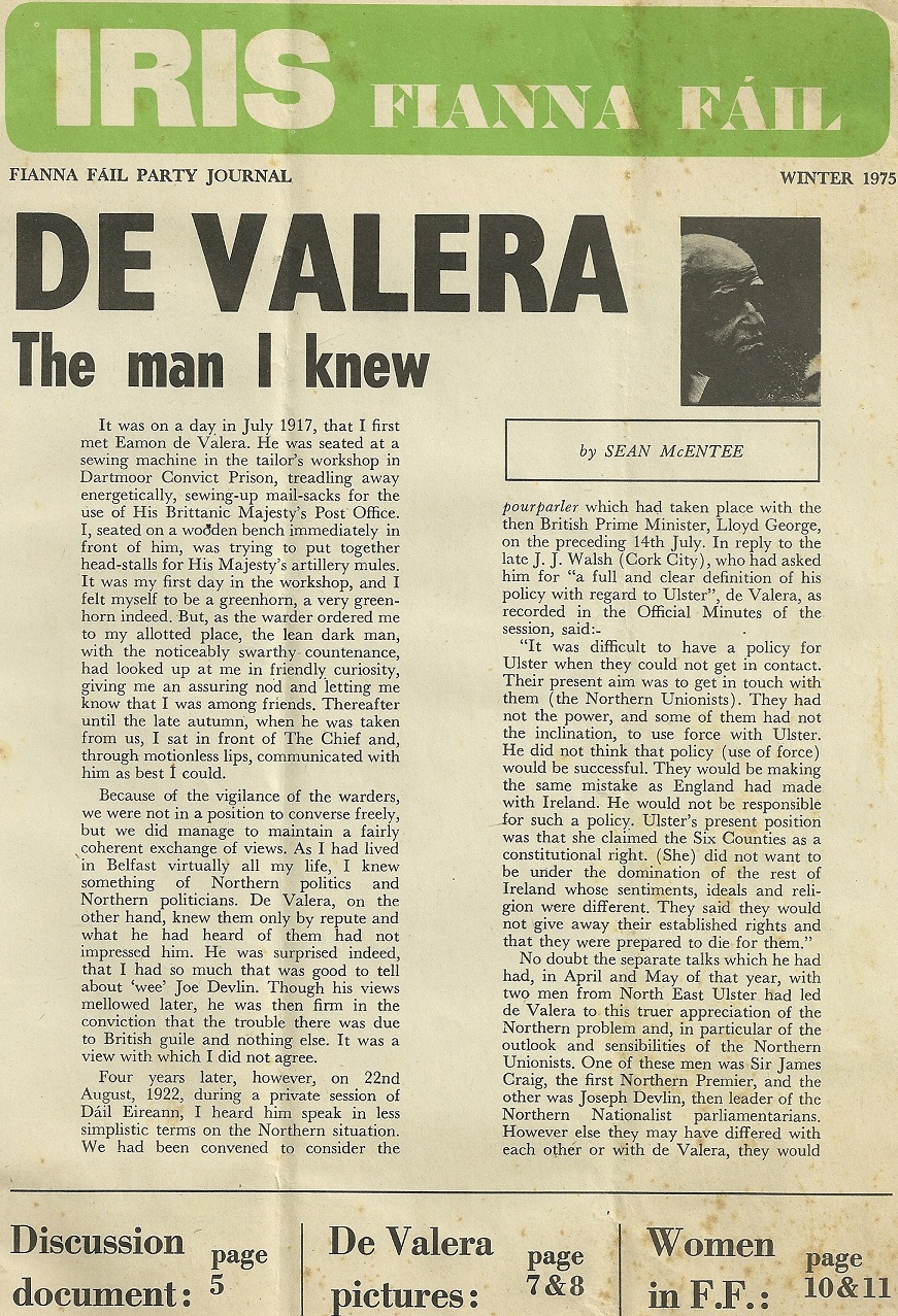 “De Valera The Man I Knew” -1975 article by Sean McEntee in ‘Iris Fianna Fail’ » irisdev1