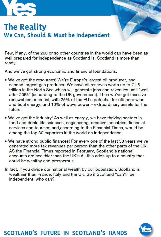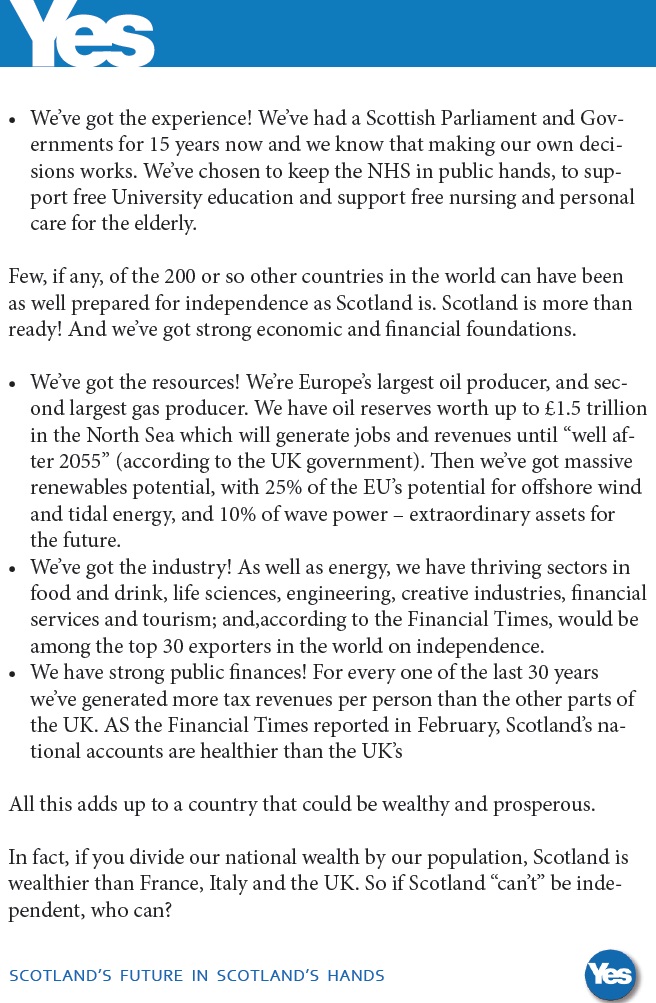 From the Scottish Independence Referendum a leaflet from The Yes side .