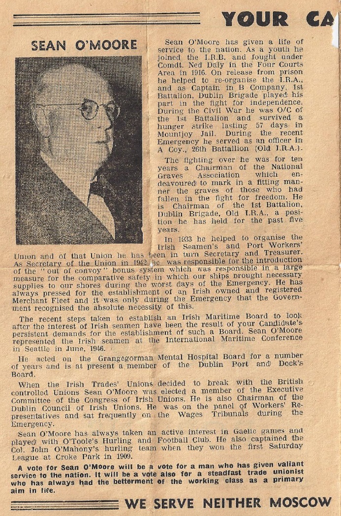 Leaflet from Sean O’Moore , Frank Robbins -National Labour Party -1948 General Election- Dublin North East » omoorerobbins48b