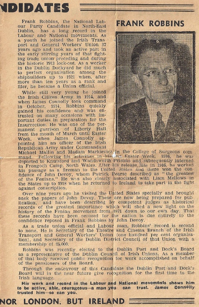Leaflet from Sean O’Moore , Frank Robbins -National Labour Party -1948 General Election- Dublin North East » omoorerobbins48c