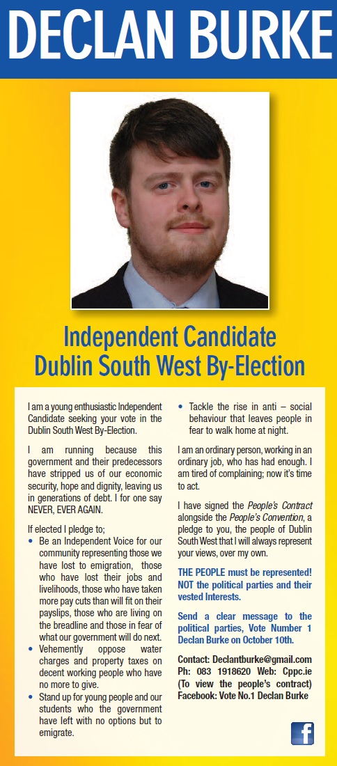 Leaflet from Declan Burke -Independent / People’s Candidate -2014 Dublin South West By-Election » dburkedsw14a
