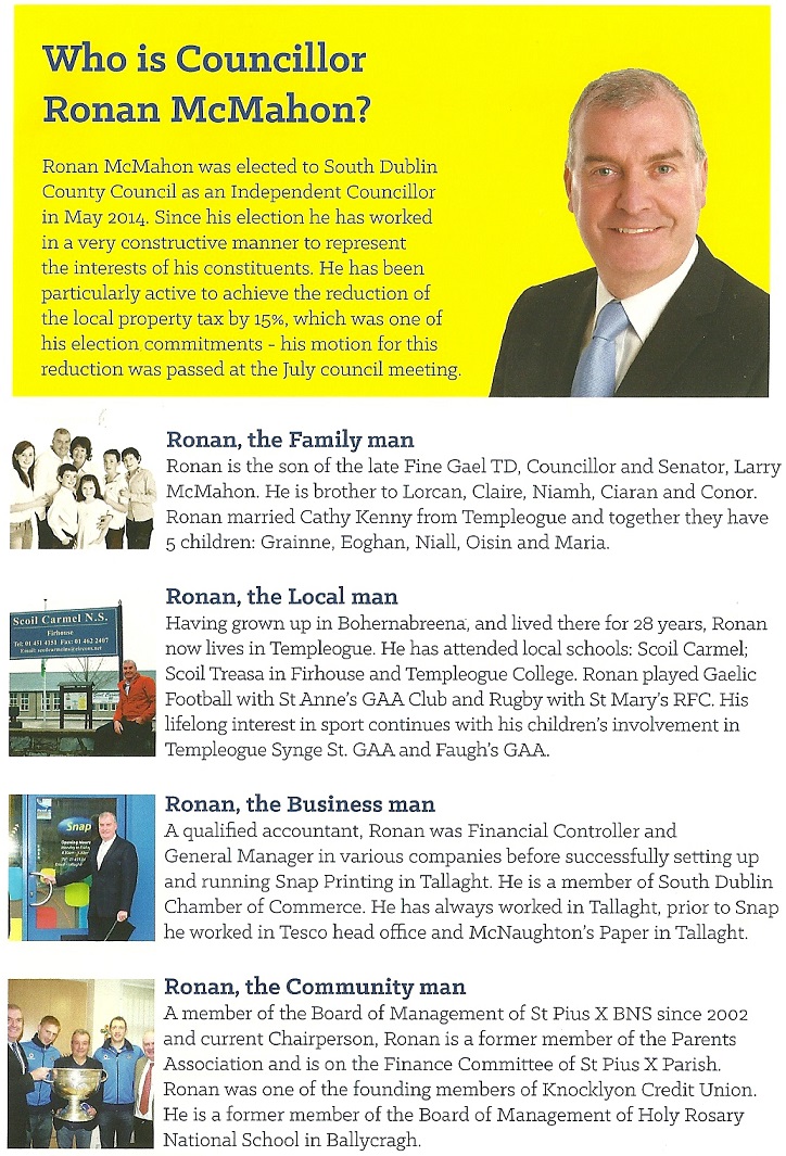 Leaflet and Dog Coat from Ronan McMahon -Independent -2014 Dublin South West By-Election » rmcmahondsw3
