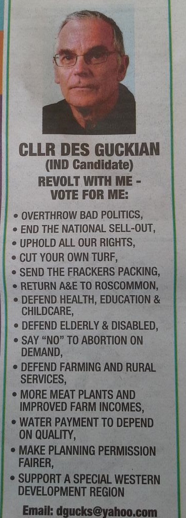 Ad and Statement on Abortion from Des Guckian -Independent – 2014 Roscommon South Leitrim By Election » dguckrsl1