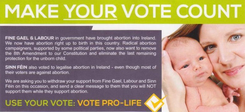 A “Vote Pro-Life” leaflet from ‘Roscommon For Life’ from the 2014 Roscommon South Leitrim By-Election, giving details of the pro life candidates and attacking Fine Gael and Labour.