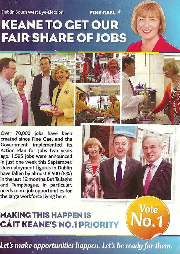“Jobs” focused leaflet from Cáit Keane -Fine Gael – 2014 Dublin South West By-Election » ckeanejobs1