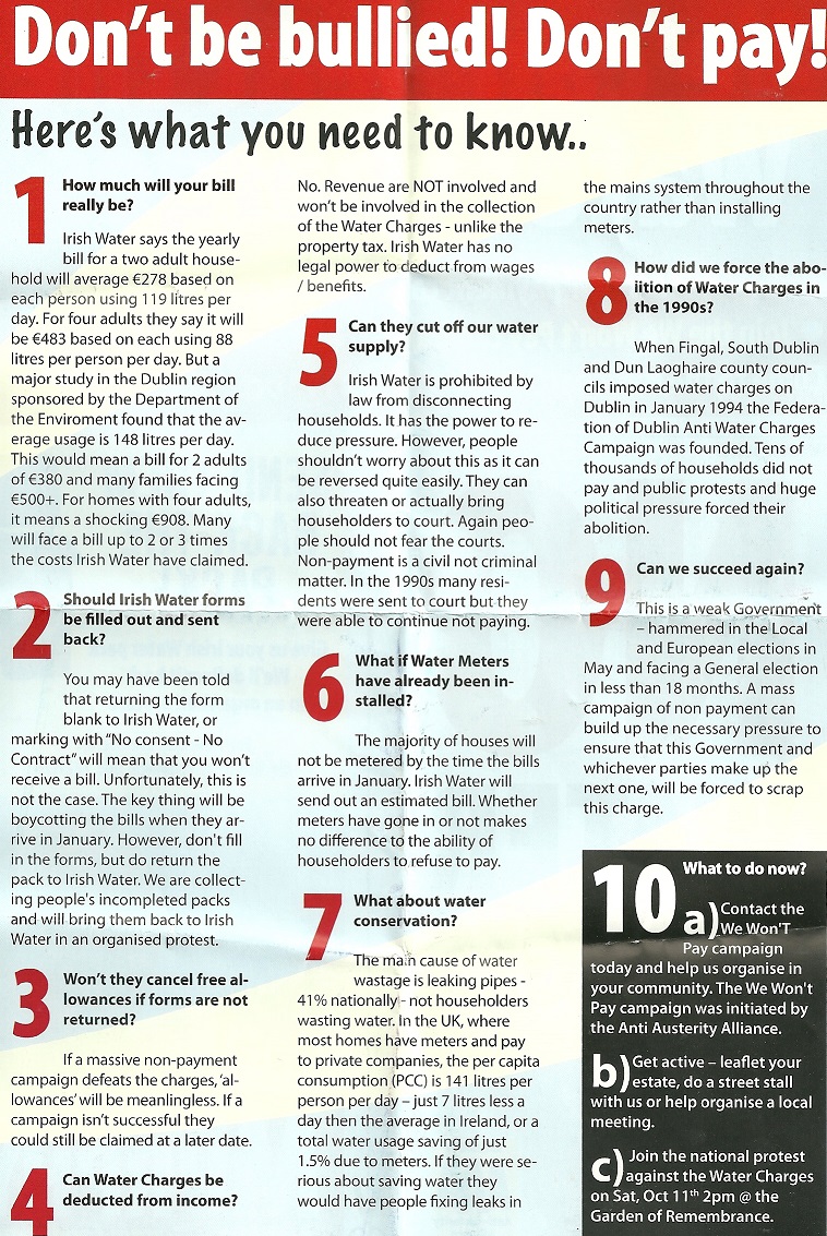 A “We can beat the Water Charges” leaflet from Paul Murphy who is running for the Anti Austerity Alliance in the 2014 Dublin South West By Election.