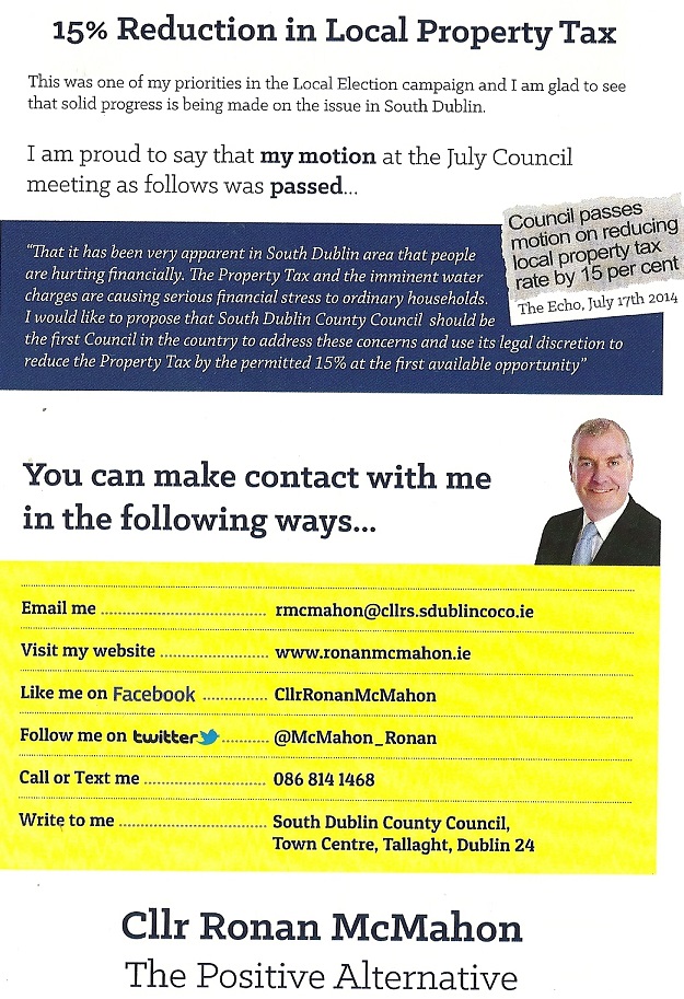 “Independents’ Day” leaflet from Ronan McMahon -Independent – 2014 Dublin South West By Election » rmcmahondindday4