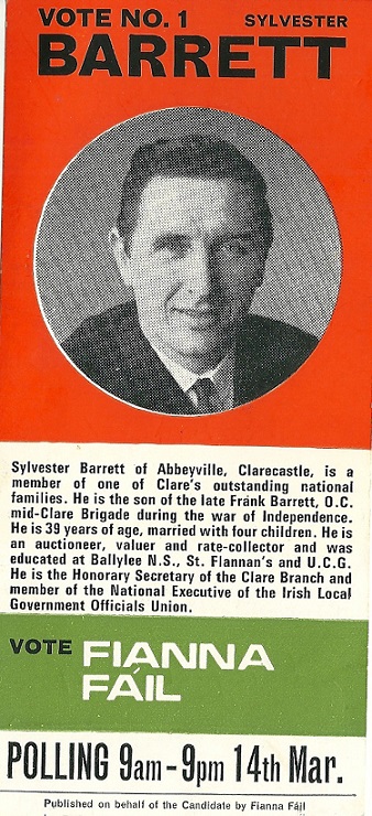 Flyer for Sylvester Barrett -Fianna Fail -1968 Clare By-Election » sbarrett68a