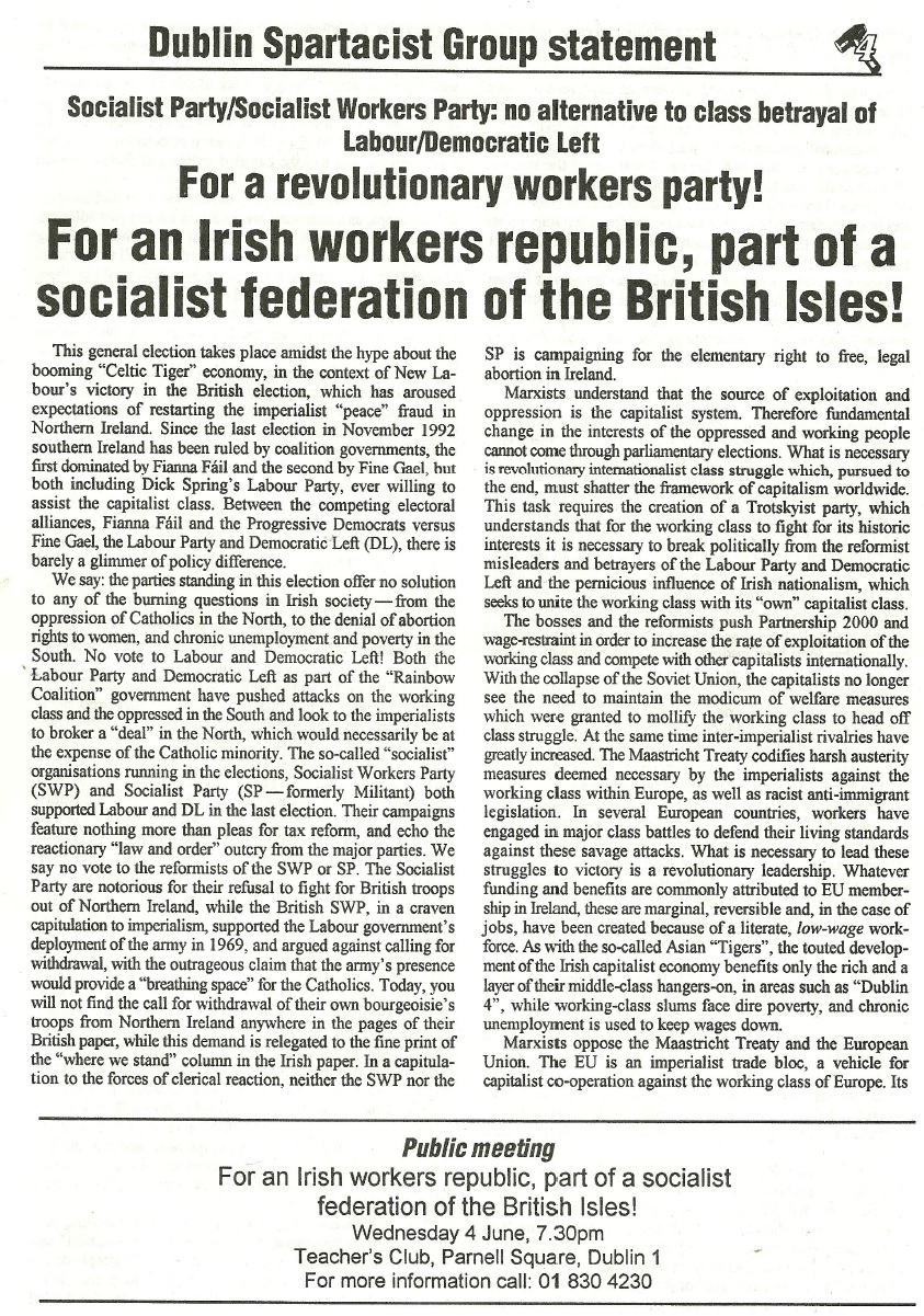 1997 General Election leaflet attacking all the other Left wing parties from the Dublin Spartacist Group » sparts