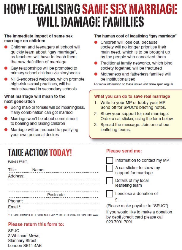 Anti Same Sex Marriage Leaflet from SPUC (UK) » spucssm2