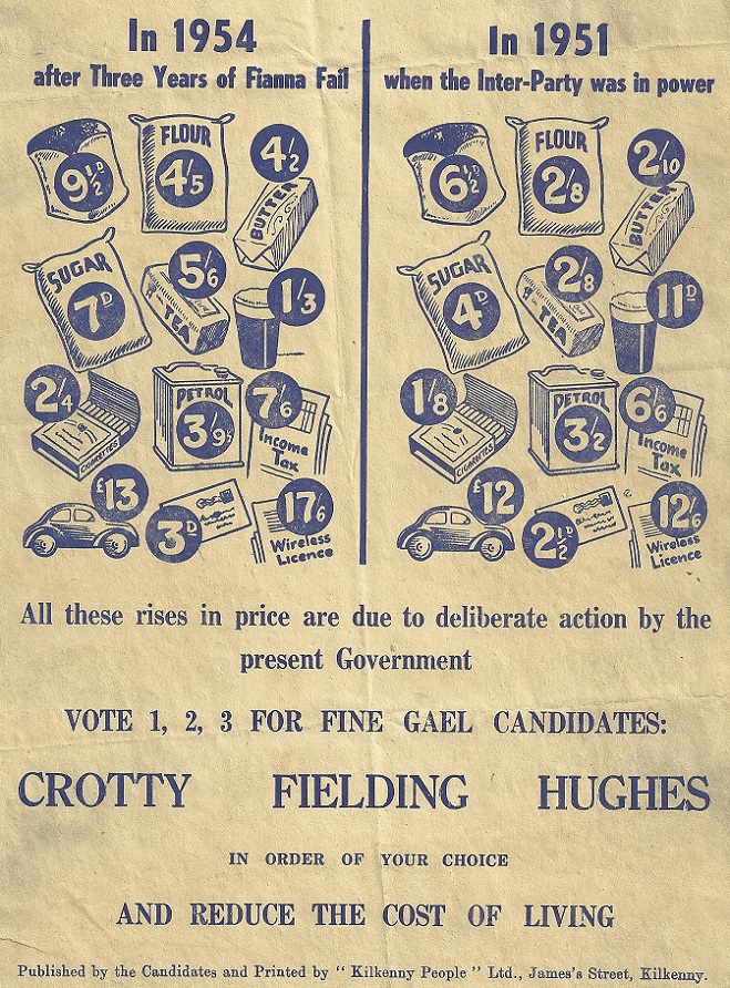 1954 General Election Leaflet for Patrick Crotty, Joseph Hughes and Thomas Fielding -Fine Gael – Carlow Kilkenny » 1954carkk