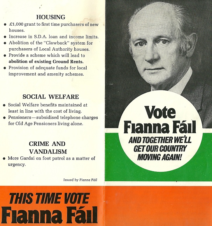 Leaflet from Jim Gibbons, Liam Aylward, Tom Nolan, Paddy Carpenter, Mick Lanigan -Fianna Fail -1977 Carlow Kilkenny » ck77ffa