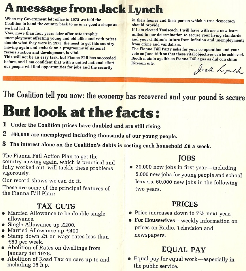 Leaflet from Jim Gibbons, Liam Aylward, Tom Nolan, Paddy Carpenter, Mick Lanigan -Fianna Fail -1977 Carlow Kilkenny » ck77ffb