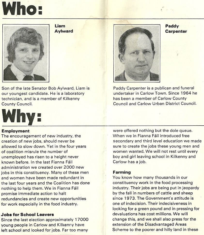 Leaflet from Jim Gibbons, Liam Aylward, Tom Nolan, Paddy Carpenter, Mick Lanigan -Fianna Fail -1977 Carlow Kilkenny » ck77ffc