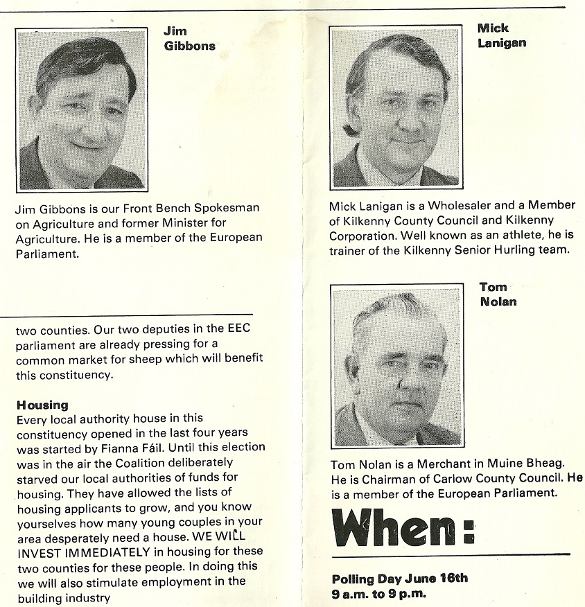 Leaflet from Jim Gibbons, Liam Aylward, Tom Nolan, Paddy Carpenter, Mick Lanigan -Fianna Fail -1977 Carlow Kilkenny » ck77ffd
