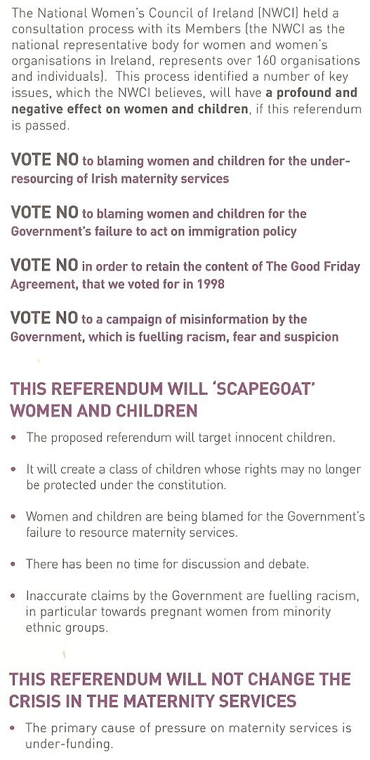 “Vote No” to The Citizenship Referendum leaflet from The National Women’s Council of Ireland » nwci2