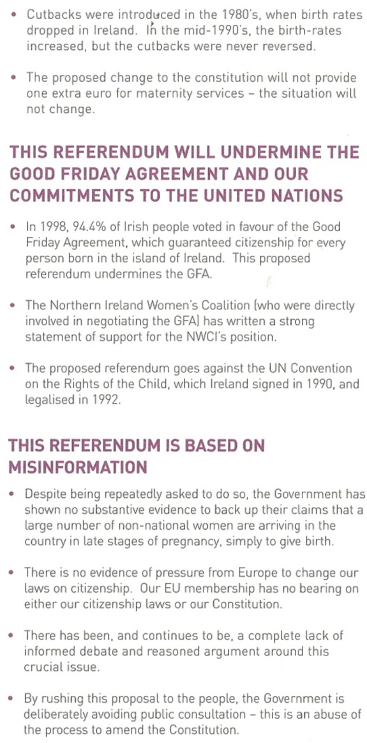 “Vote No” to The Citizenship Referendum leaflet from The National Women’s Council of Ireland » nwci3