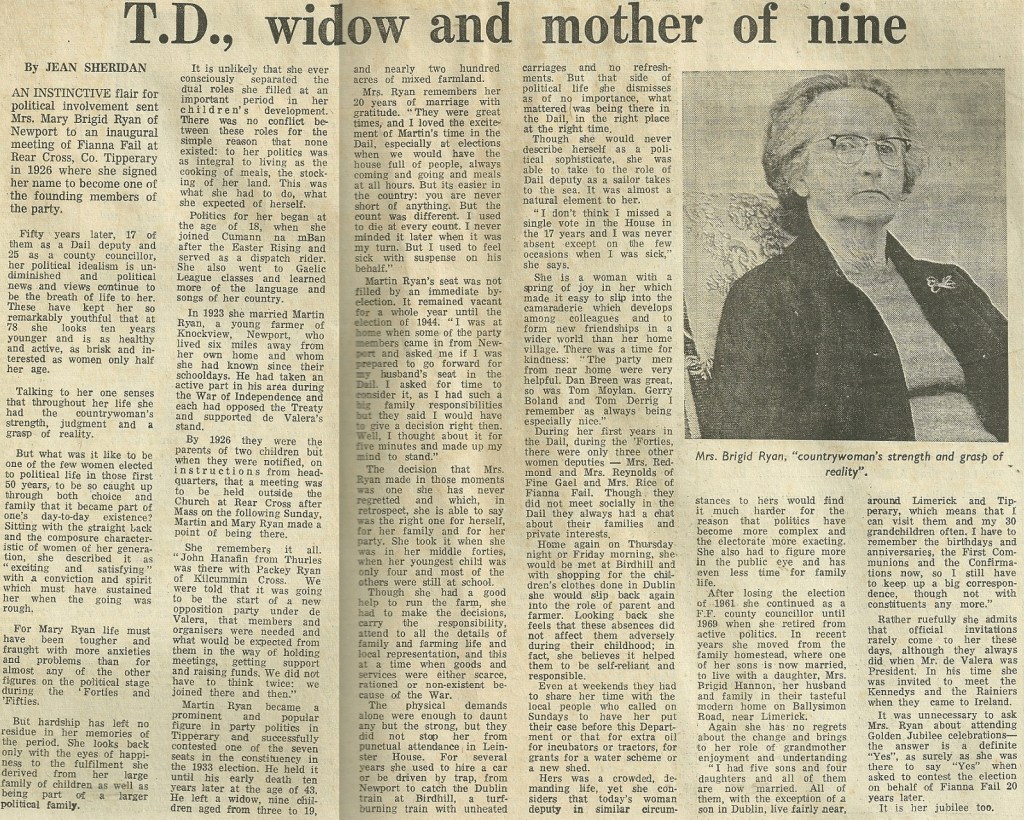 From an Irish Press Supplement to celebrate 50 years of Fianna Fail , an interview with former TD Mary Brigid Ryan » mbryan