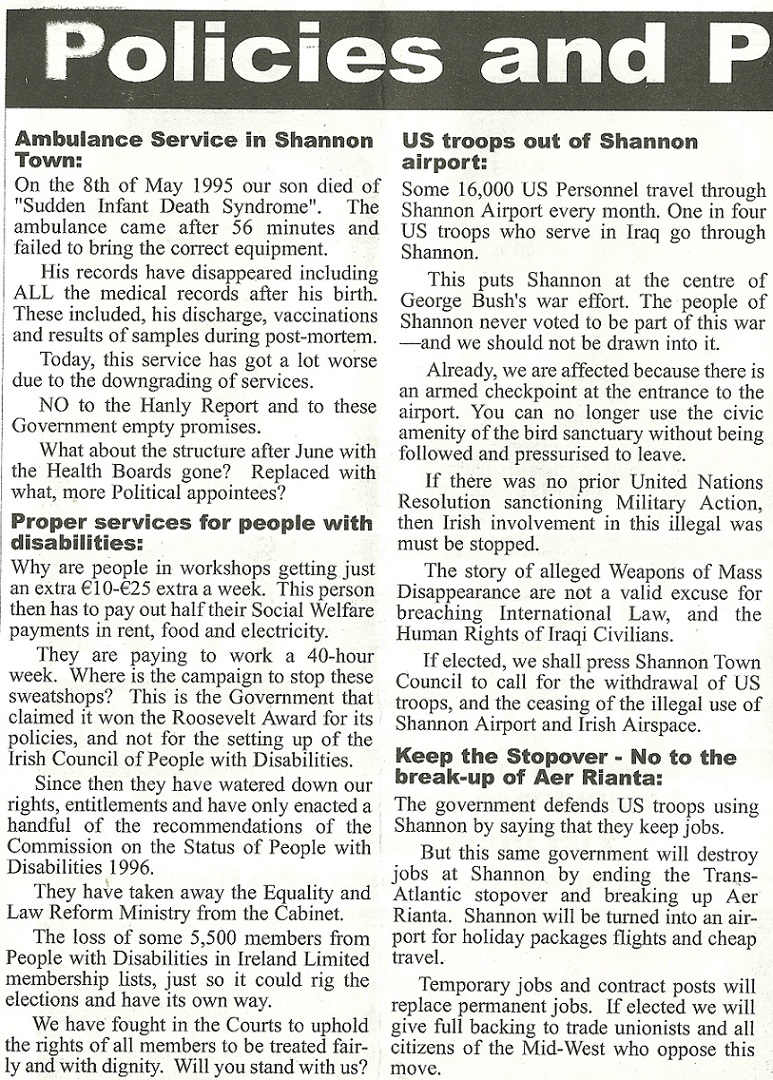 Leaflet from Damon Matthew Wise and Karen Christine Wise -2004 Shannon Town Council » wise04b