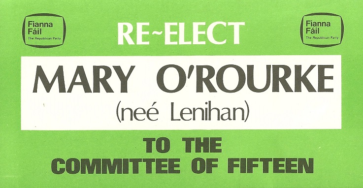 “Re-Elect Mary O’Rourke (Neé Lenihan) to The Committee of Fifteen” flyer from 1980 » morourke1