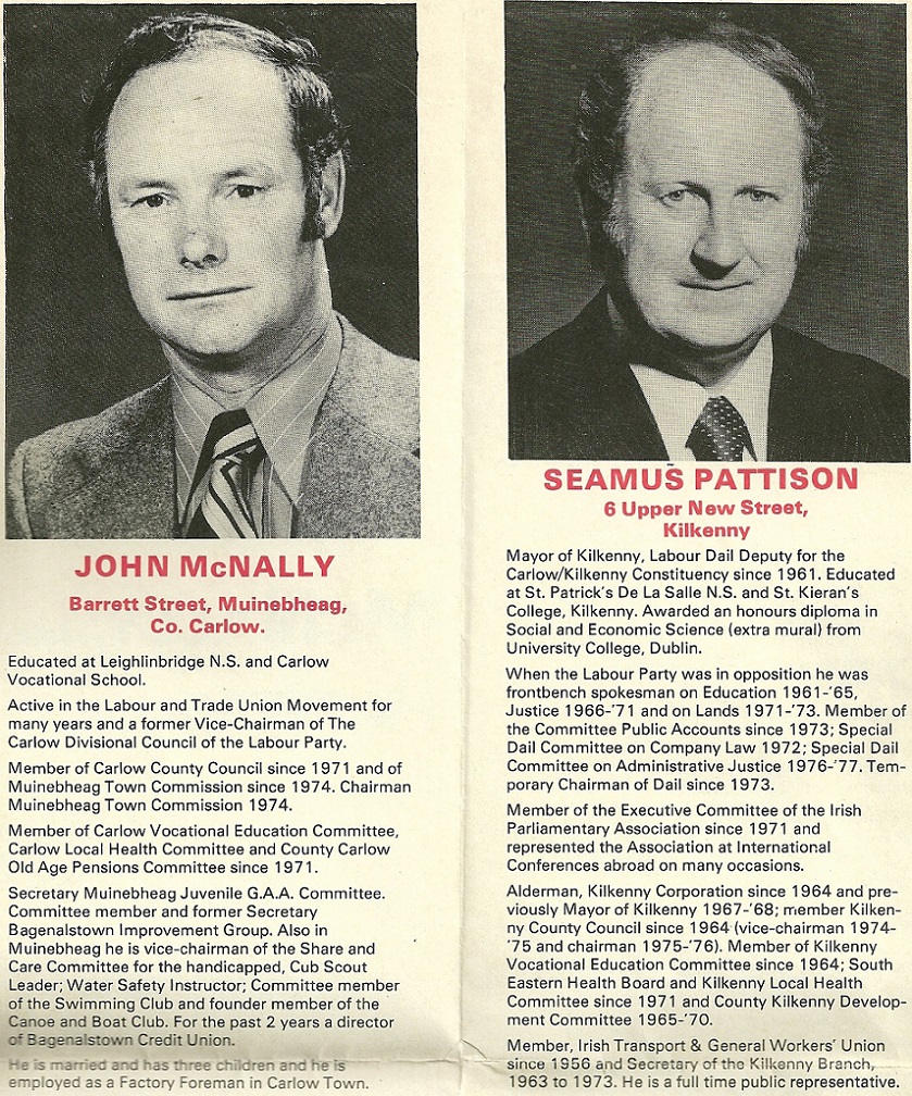 Leaflet from John McNally, Seamus Pattison -Labour – Carlow Kilkenny 1977 General Election » cklab77b
