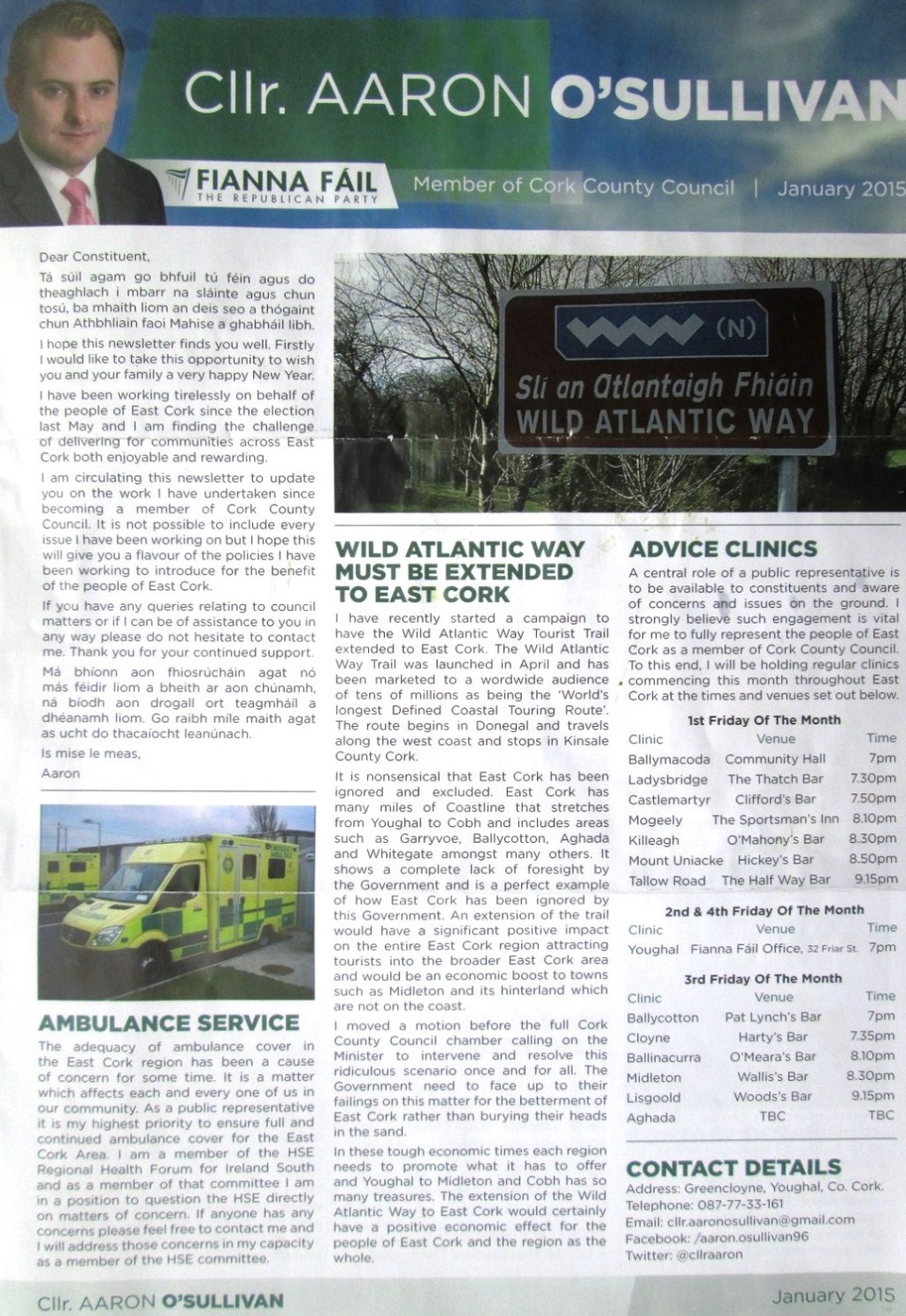 January 2015 Newsletter from Aaron O’Sullivan – Fianna Fail – Cork East » ???????????????????????????????