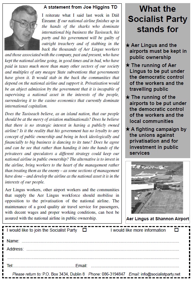 “No to Privatisation of Aer Lingus” 2005 leaflet from The Socialist Party » spaerlingus2