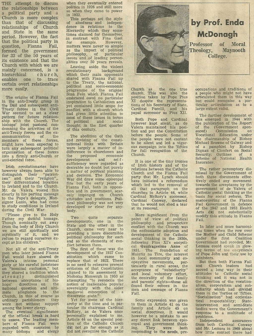 From an Irish Press Supplement to celebrate 50 years of Fianna Fail a piece on “Church State Relations” » churchstate1
